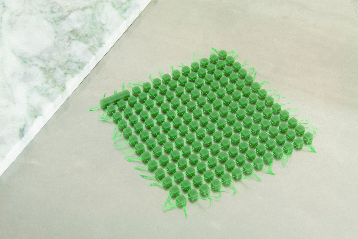 ABOUT Kema is a modern interpretation of the traditional craft of weaving. It features a grid of cotton yarn secured with vibrant rubber cubes. The resulting heat-resistant home textiles are surprisingly flexible and adorn the dinner table like elegant jewels, combining functionality and aesthetics.